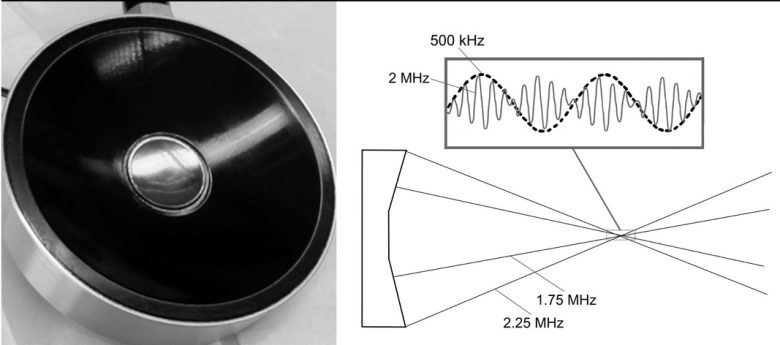 Researchers at the University of Washington developed a technology that activates neurons using a composite wave formed at the intersection of two ultrasonic waves with different frequencies. (Mehić et al. 2014)