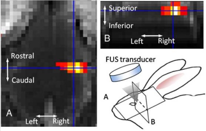 British researchers targeted the amygdala and anterior cingulate cortex, located deep within the brain, of rhesus monkeys and irradiated them with 250 kHz ultrasonic waves pulse-modulated at 1 Hz for 40 seconds. (Folloni et al. 2019)