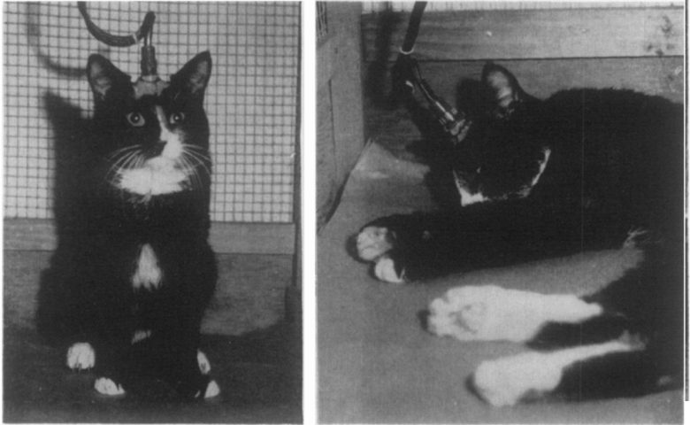 The tone of the skeletal muscles, as well as spontaneous activity and responsiveness, was entirely lost. When touched by the experimenter, the cat would remain entirely unreactive.