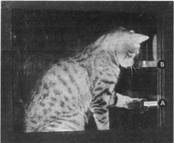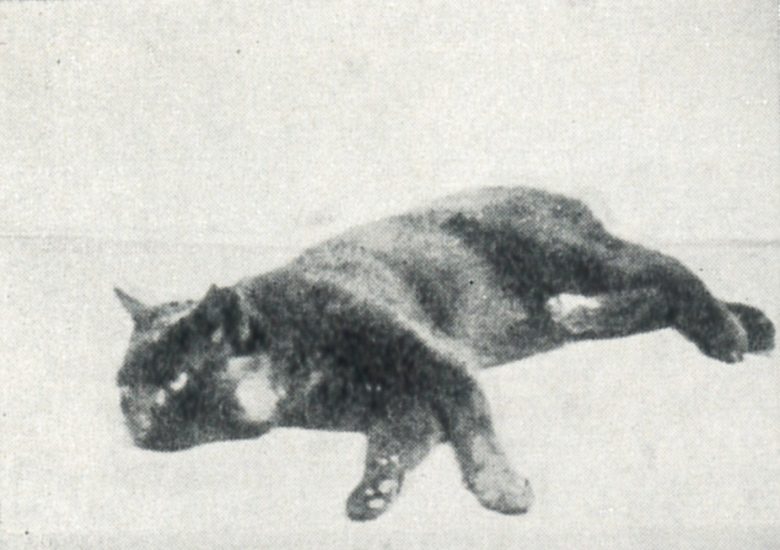 If undisturbed, the reclining cat drooped his head to the floor or rested it on his forepaws, closed or partially closed his eyes, and, to all appearances, went to sleep.