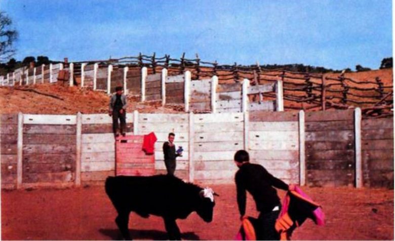 Delgado then backed away, sought shelter behind a wooden barrier in the ring, and turned off the stimulation, and the bull immediately charged again and rammed the barrier.