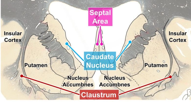The claustrum synchronizes inhibitory neurons in the widespread neocortical areas, and is involved in generating slow waves, the brainwaves seen during sleep and rest. (Narikiyo et al. 2020)
