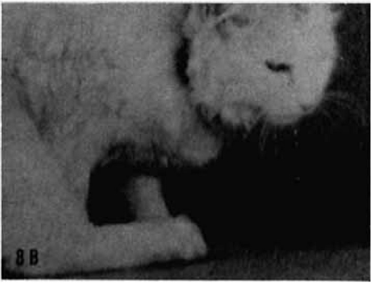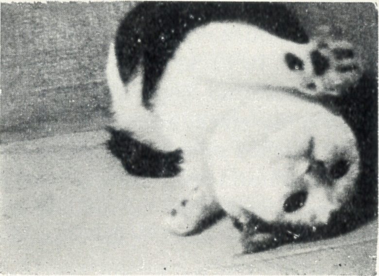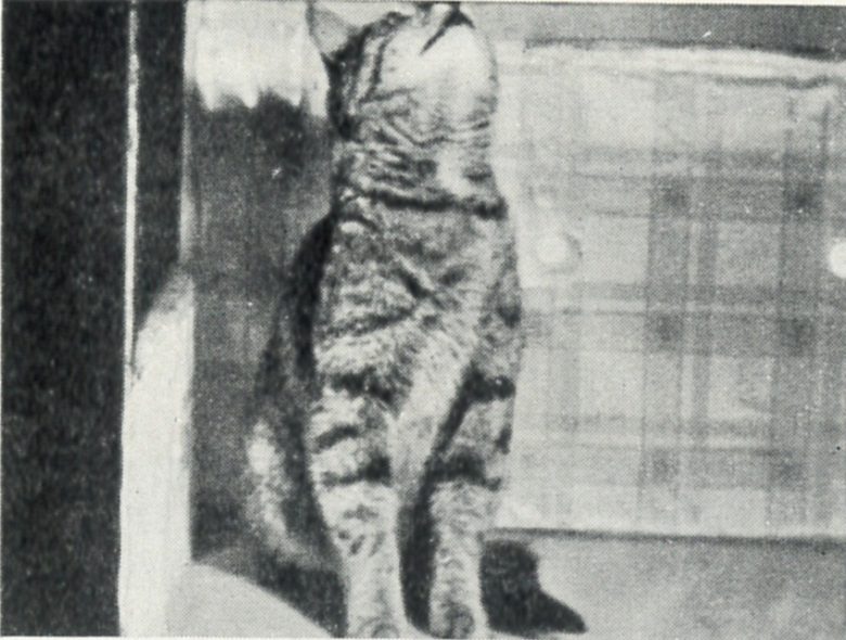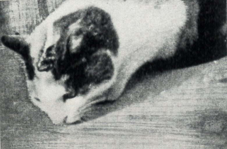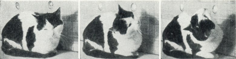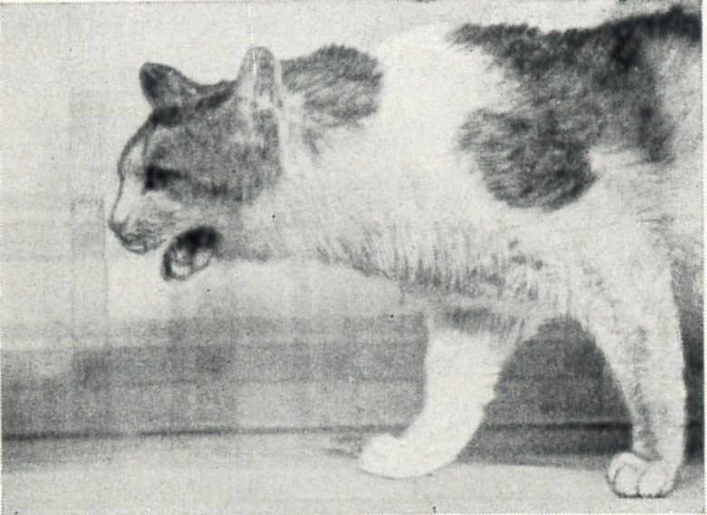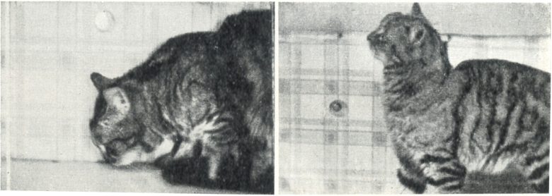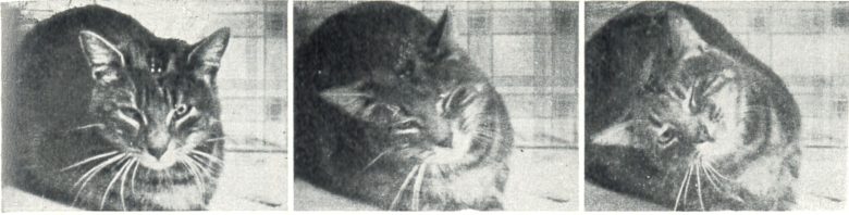 The tongue moved in a regular rhythm; the head was often lowered, while in other cases the cat licked the air.