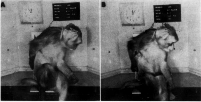 This sequence could be repeated as often as desired, and the movements could not be discriminated by observers from those which occurred when the monkey voluntarily performed the same act.