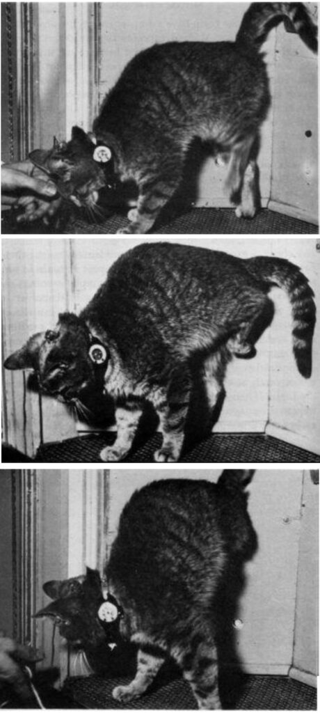 Dr. Hess discovered that electrical stimulation of various regions of the diencephalon (thalamus and hypothalamus) in cats can produce various bodily functions. (Hess 1958)