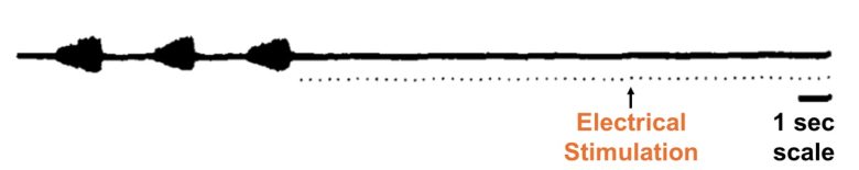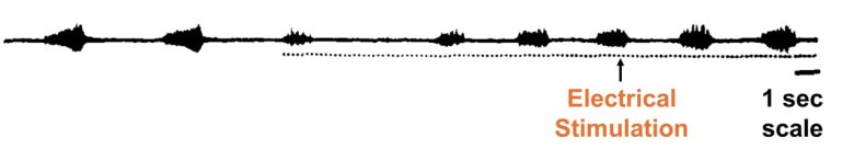 Increasing the intensity of the stimulation caused a “tetanic-like contraction” in the muscle during stimulation, followed by several swallows.