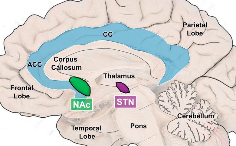 NAc = nucleus accumbens; STN = subthalamic nucleus; CC = cingulate cortex; ACC = anterior cingulate cortex.