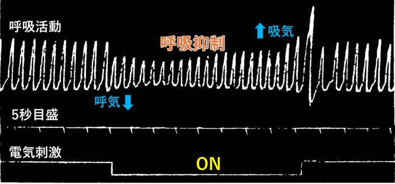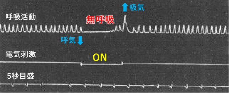 また脳幹の電気刺激で嚥下、くしゃみ、咳、嘔吐、排尿、排便といった自律神経系の運動を誘発することができます。