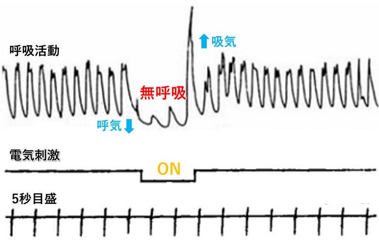 また脳幹には呼吸中枢が存在し、自動的かつ継続的な呼吸運動にはこの回路が必要不可欠です。(Saper et al. 2013, Bianchi and Gestreau 2009)