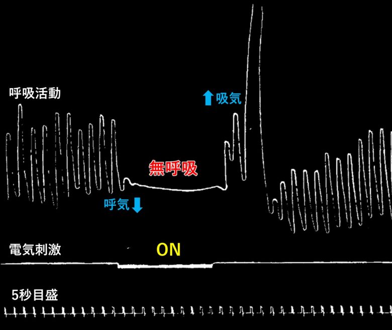 脳幹の電気刺激によって嚥下、くしゃみ、咳、嘔吐、排尿、排便などの生理現象を引き起こすことができます。